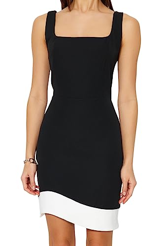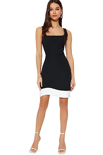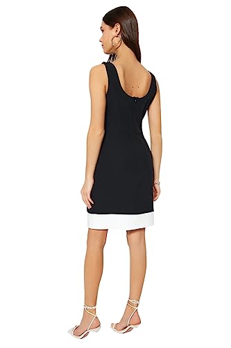Trendyol - فستان قصير منسوج أسود اللون بقصة ضيقة بتفاصيل مخططة بلون أبيض للنساء TWOSS23EL02048 من تريندول (قطعة واحدة)