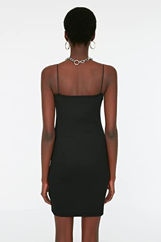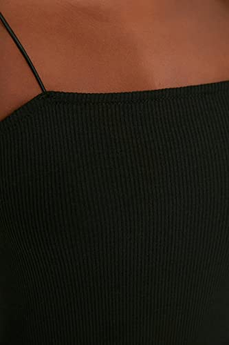 Trendyol - ترنديول فستان ضيق ضيق للنساء بلون اسود ورقبة مربعة وحزام سباغيتي قصير قابل للتمدد TWOSS21EL2327