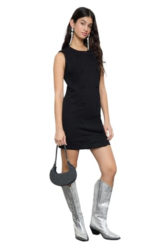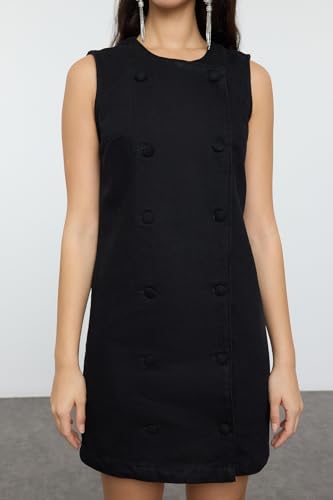 Trendyol - ترنديول فستان جينز قصير بفتحة صدر مزدوجة ومفصلة بازرار للنساء، لون اسود، TWOSS25EL00009