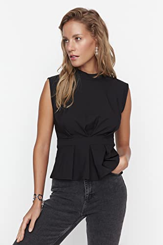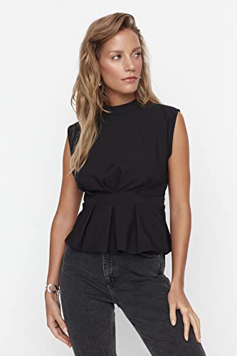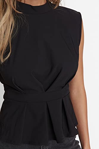 Trendyol - ترنديول بلوزة منسوجة بدون اكمام ورقبة دائرية ضيقة للنساء بلون اسود TWOAW23BZ00559 (عبوة من قطعة واحدة)