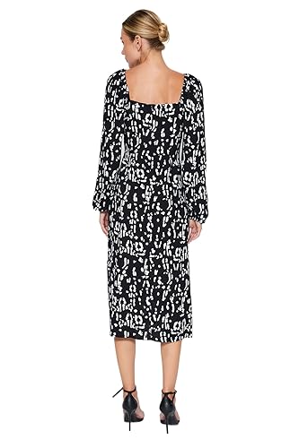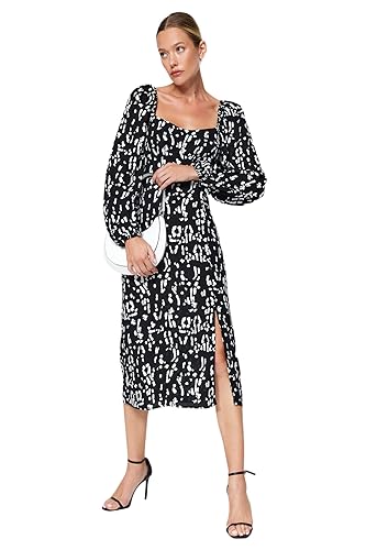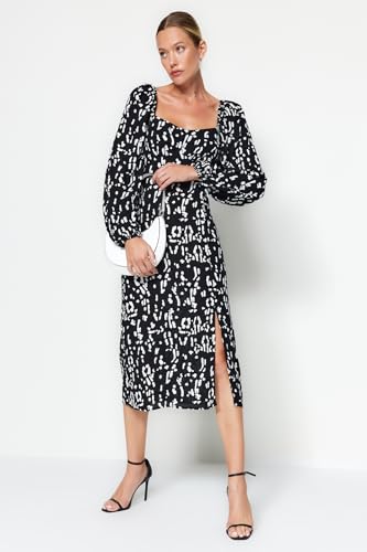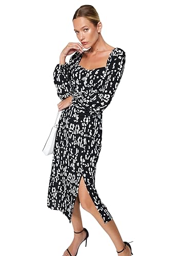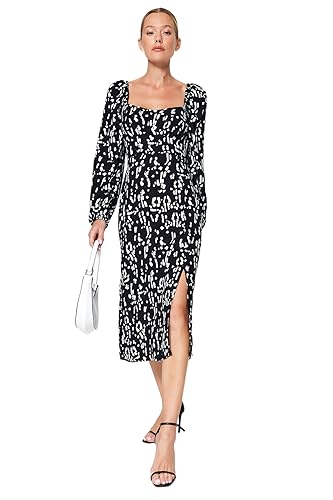 Trendyol - فستان بقصّة مستقيمة ونقشة هندسية للنساء، لون أسود، فستان من نسيج محبوك من الفسكوز، فستان TWOAW24EL00865 من ترنديول