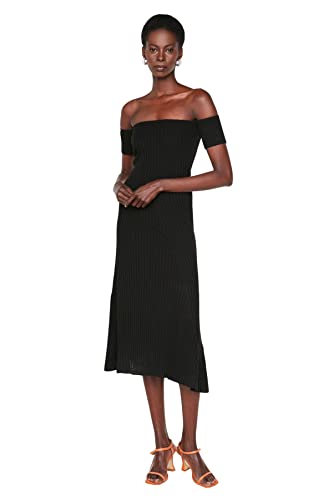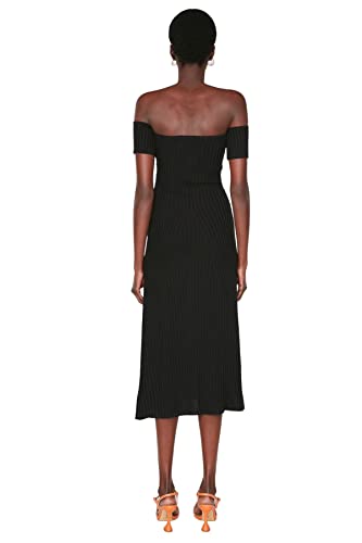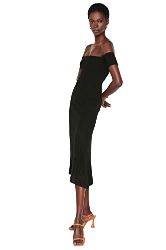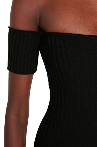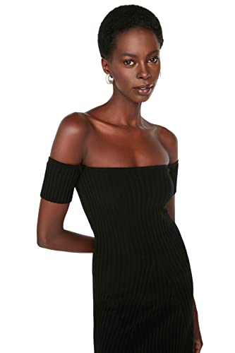 Trendyol - ترنديول فستان محبوك متوسط الطول بقبة كارمن للنساء، لون اسود، TWOSS22EL2388