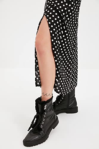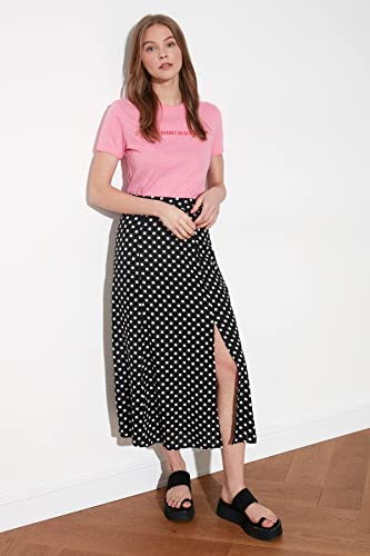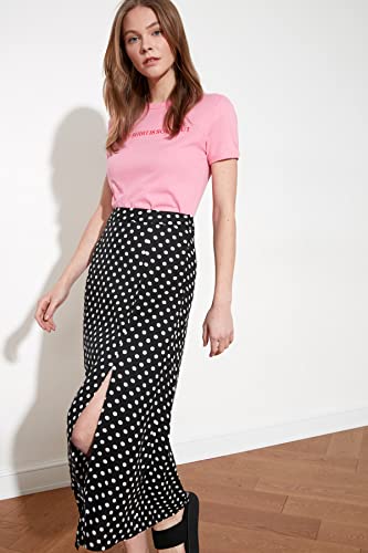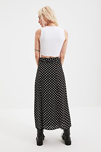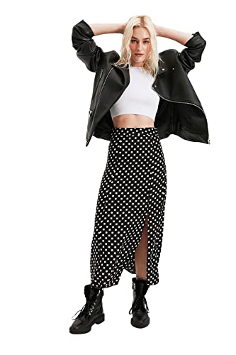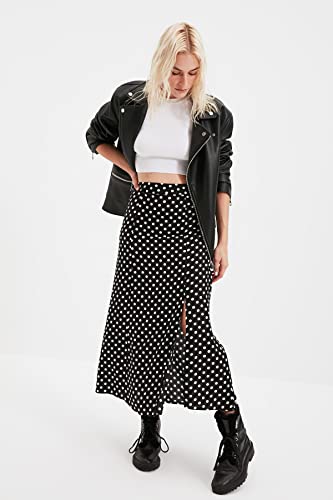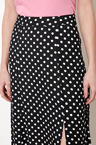 Trendyol - جيبة للنساء متوسطة الطول من الفسكوز بلون أسود منقط وتفاصيل فتحة، مصنوعة من قماش فيسكوز، طراز TWOAW20ET0205 من ترينديول
