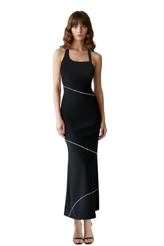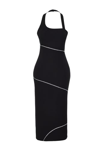 Trendyol - فستان من نسيج محبوك بلون أسود مزين بحجارة لامعة للنساء طراز TPRSS25EL00019 من ترنديول