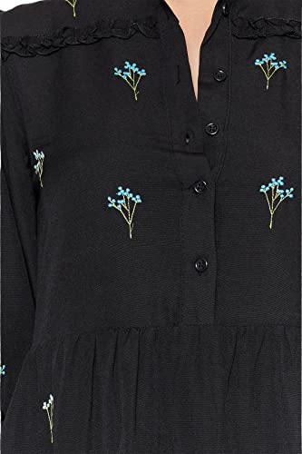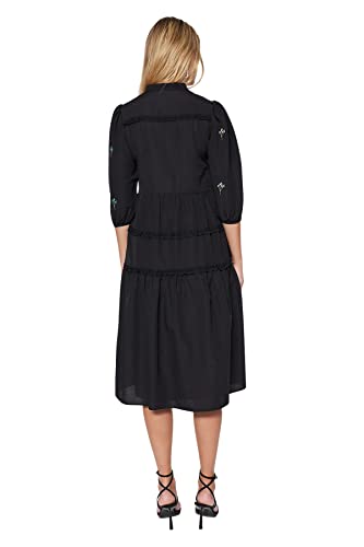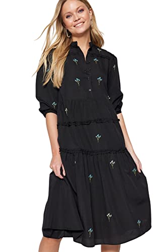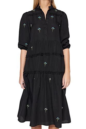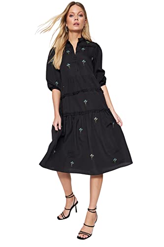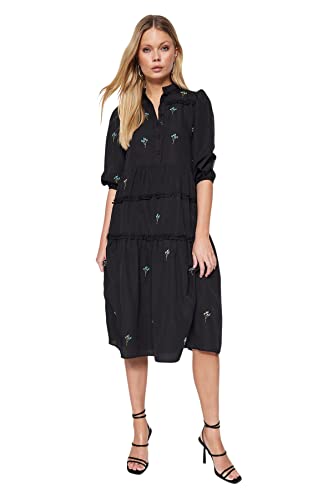 Trendyol - ترنديول فستان منسوج متوسط الطول مطرز بقصة مستقيمة للنساء، لون اسود، TWOAW22EL0882
