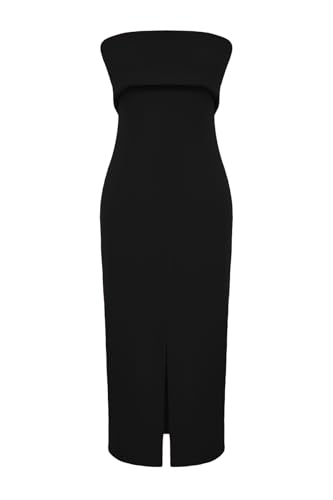 Trendyol - ترنديول فستان انيق متوسط الطول منسوج بدون حمالات للنساء TPRSS25EL00041