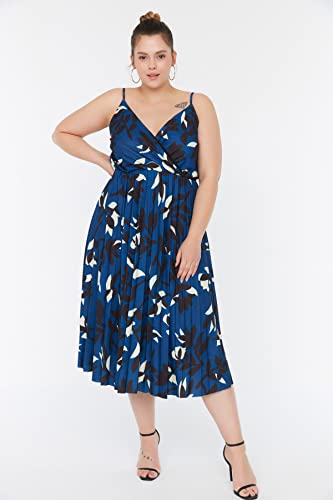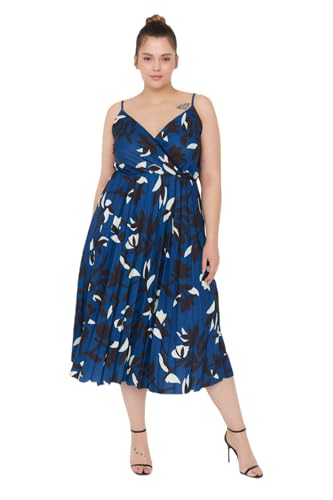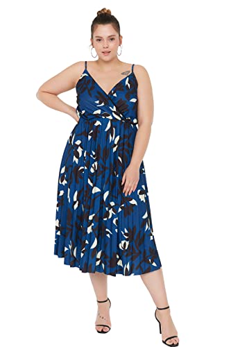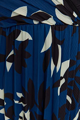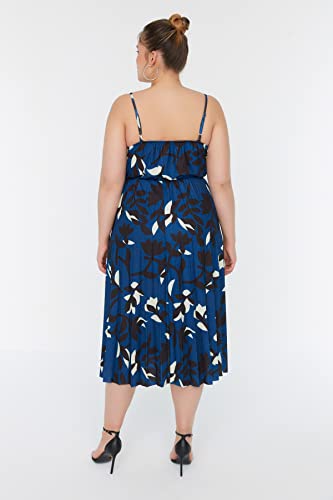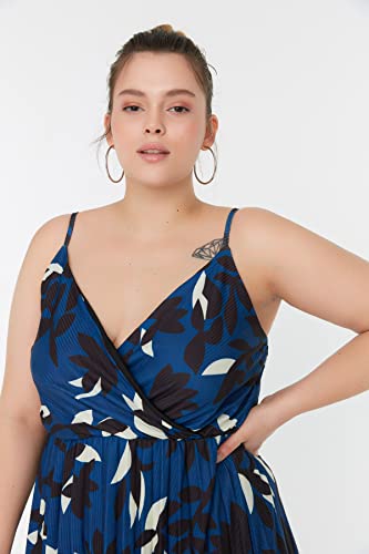 Trendyol - ترنديول فستان صيفي محبوك بتصميم ايه لاين مزدوج الصدر مزين بالزهور للنساء TBBSS22AH00000 مقاس كبير