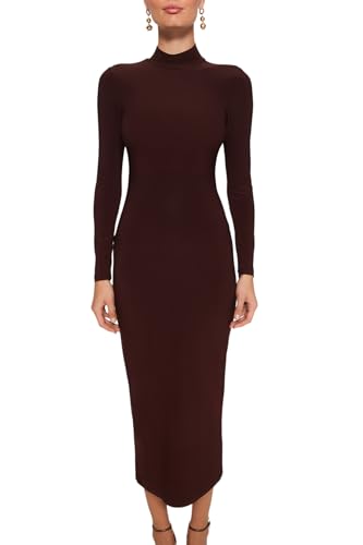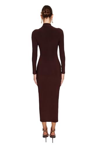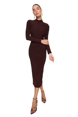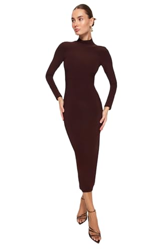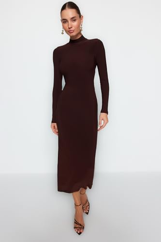 Trendyol - فستان ماكسي مرن محبوك بقبة عالية TWOAW24EL00614 للنساء من ترنديول، بني