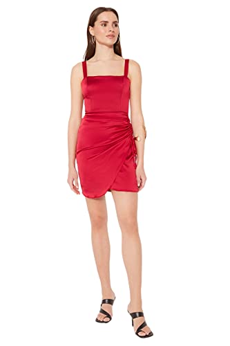 Trendyol - ترنديول فستان سهرة انيق قصير منسوج من الساتان بلون بورغندي TPRSS21EL2287