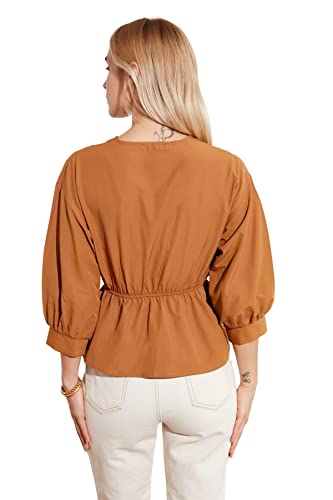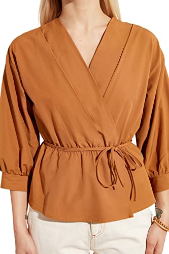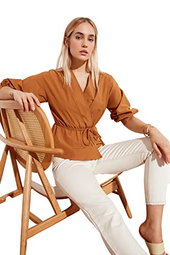 Trendyol - بلوزة منسوجة TWOSS21BZ0287 بصف أزرار مزدوج مع تفاصيل رباط للنساء من ترينديول - جملي (عبوة من قطعة)