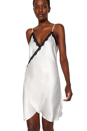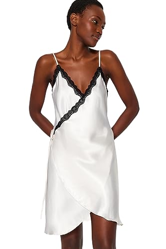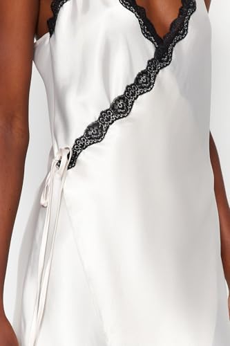 Trendyol - ترنديول قميص نوم نسائي من الساتان المنسوج برباط وربطة عنق من الساتان THMAW24GC00005