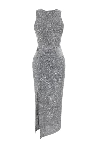 Trendyol - فستان سهرة TPRSS24EL00030 أنيق منسوج مزين بالترتر اللامع للنساء من ترنديول