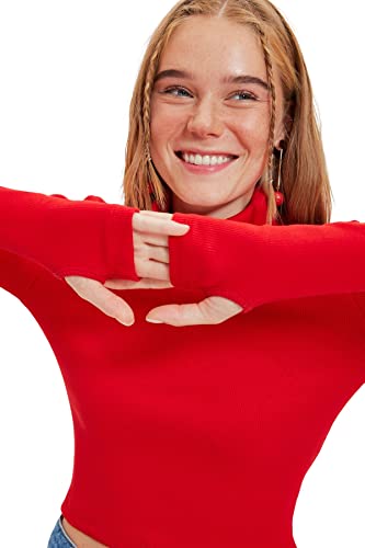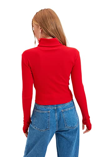 Trendyol - بلوزة منسوجة مضلعة وقابلة للتمدد مع ياقة مرتفعة ضيقة للنساء من ترينديول، مع فتحة لإصبع الإبهام، عبوة قطعة واحدة، موديل TWOAW21BZ0071