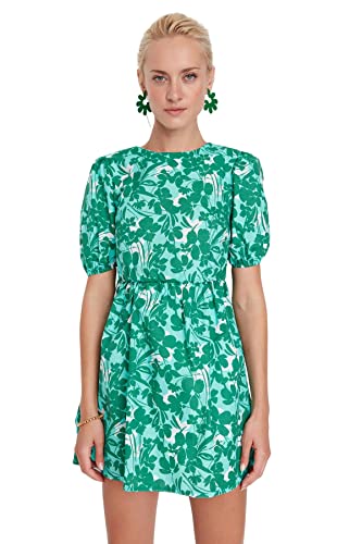 Trendyol - فستان للنساء قصير بنقشة زهور، طراز TWOSS22EL2858، مع فتحة خلفية وحزام لتحديد الخصر للمناسبات الصيفية والغير رسمية من ترينديول