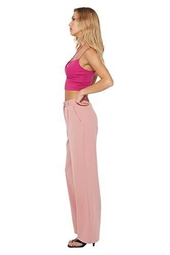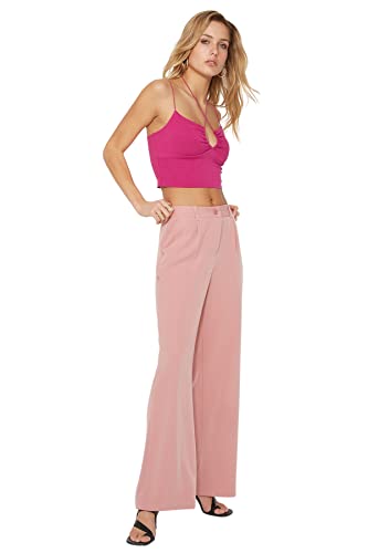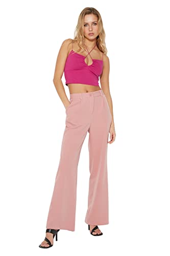 Trendyol - بنطلون TWOAW21PL0076 بكسر وخصر مرتفع وقصة أرجل واسعة من نسيج محبوك للنساء من ترنديول، (عبوة من 1 قطعة)