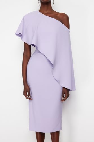 Trendyol - فستان سهرة أنيق للنساء طراز TPRSS24EL00118، مصنوع من نسيج محبوك بتفاصيل أكمام من ترنديول