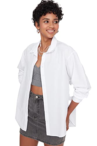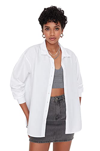Trendyol - قميص بنسيج محبوك TWOAW20GO0107 للنساء بقصة واسعة من القطن المنسوج من ترينديول (عبوة من قطعة واحدة)