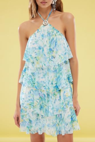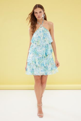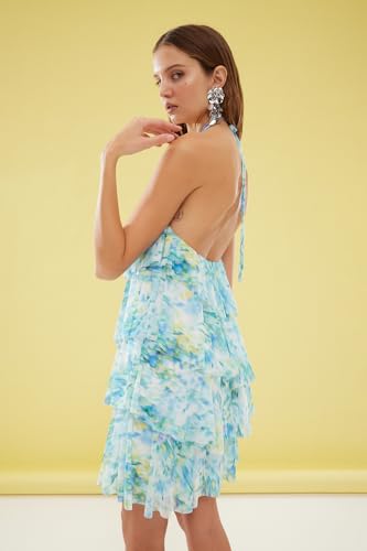 Trendyol - ترنديول فستان قصير مكشكش ومبطن من التول للنساء متعدد الالوان من ايه لاين TPRSS25EL00178
