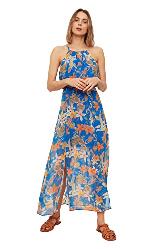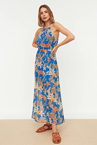 Trendyol - فستان ماكسي TWOSS20EL1297 منسوج من الشيفون بقصة ايه لاين مع شق ورقبة برباط للنساء من ترنديول، بلون أزرق كحلي