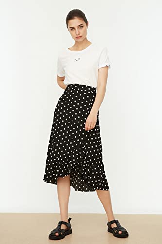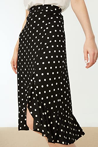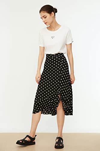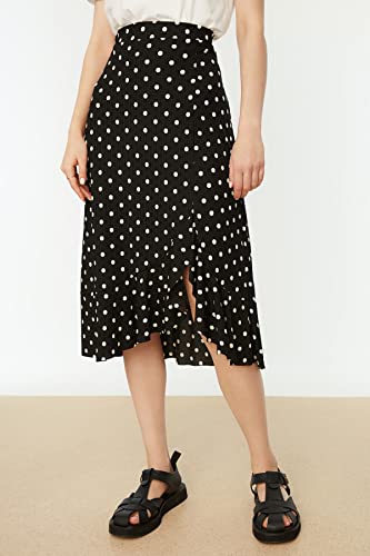 Trendyol - جيبة TWOSS21ET0029 منقوشة عالية الخصر ومتوسطة الطول ومرنة منسوجة مع تفاصيل تجمع وكشكشة للنساء من ترينديول