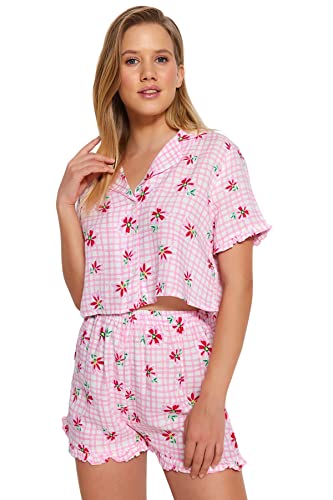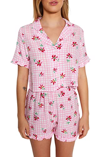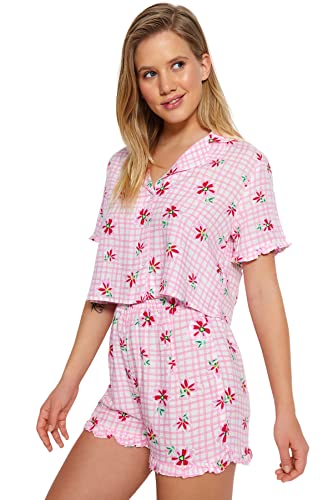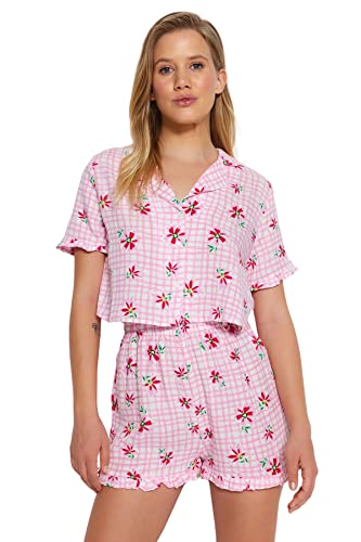 Trendyol - ترنديول طقم بيجامة فيسكوز منسوج مزين بالزهور بلون بينك للنساء Thmss23Pt00167 (عبوة من قطعة واحدة)