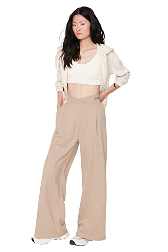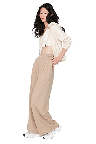 Trendyol - بنطلون منسوج بقصة أرجل واسعة وقصة مريحة وخصر غير متساوي مطبوع TWOAW23PL00389 للنساء من ترينديول