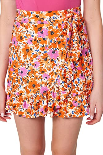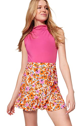 Trendyol - ترنديول جيبة محبوكة صغيرة قابلة للتمدد بخصر مرتفع مزينة بكشكشة مطبوعة للنساء TWOSS21ET0010 (عبوة من قطعة واحدة)