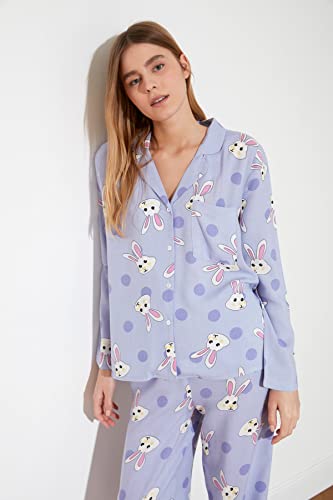 Trendyol - طقم بيجامة منسوجة بطبعة أرنب للنساء من ترينديول، THMAW21PT0048