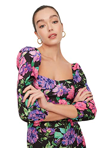 Trendyol - فستان متعدد الألوان برقبة مربعة وأكمام بالون للنساء من ترينديول