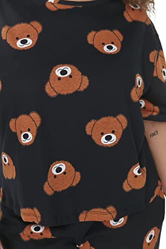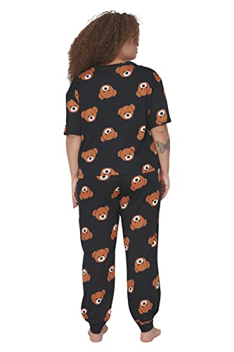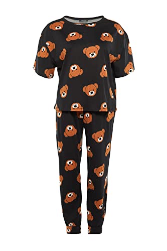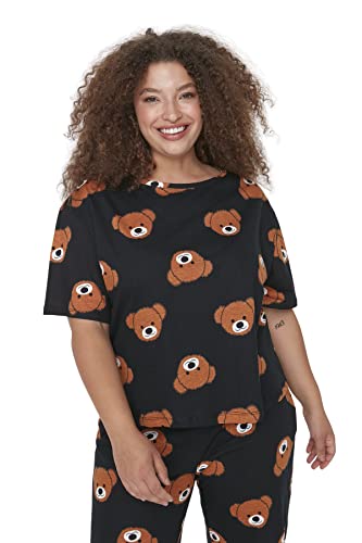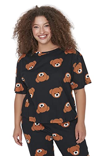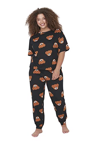 Trendyol - طقم بيجامة نسائي مطبوع عليه عبارة ترنديول Women مع تي شيرت وبنطلون محبوك من ترنديول، مقاس كبير (عبوة من قطعتين)