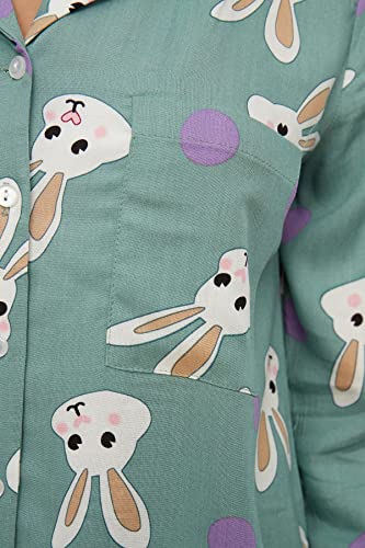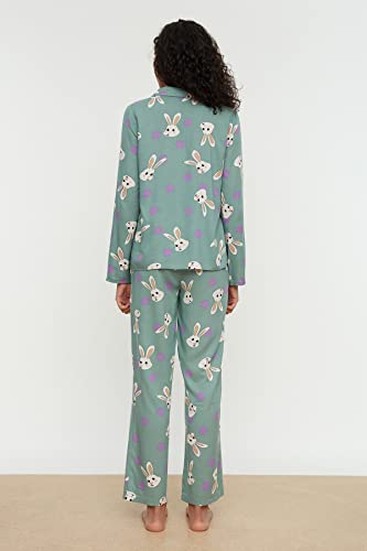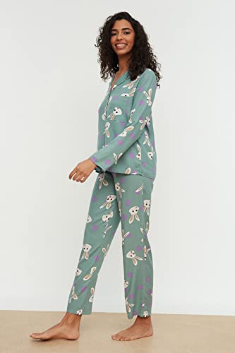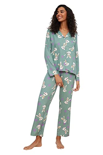 Trendyol - طقم بيجامة من نسيج محبوك مطبوع بتصميم أرانب للنساء من ترينديول