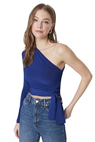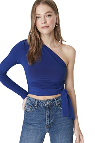 Trendyol - بلوزة قصيرة محبوكة ومرنة بكم واحد وتفاصيل رباط قصة ضيقة سليم فيت للنساء TWOAW23BZ00094 من ترنديول