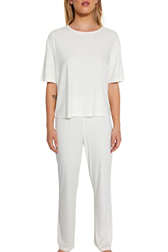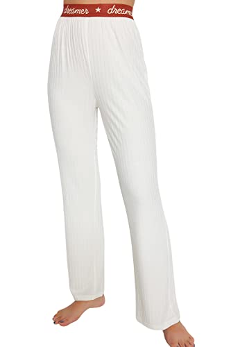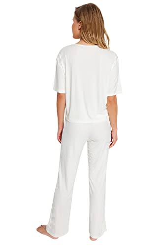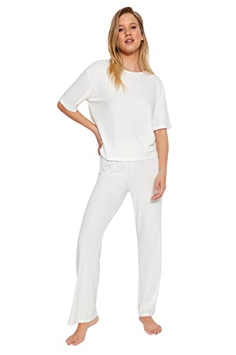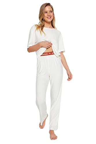 Trendyol - طقم بيجامة للنساء THMSS21PT1016 مكون من تيشرت وبنطلون مضلع منسوج مزين بأستك من ترنديول مطبوع عليه شعار (عبوة من قطعة واحدة)