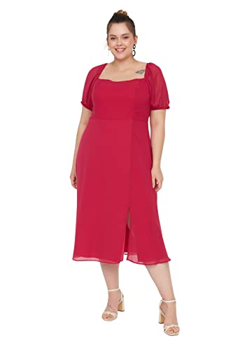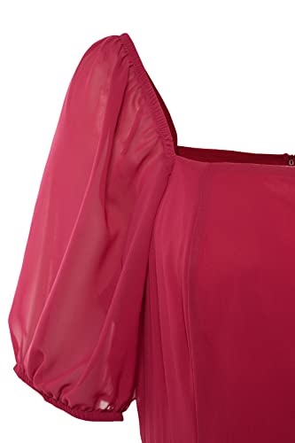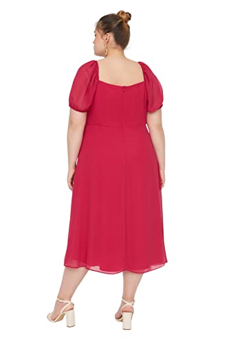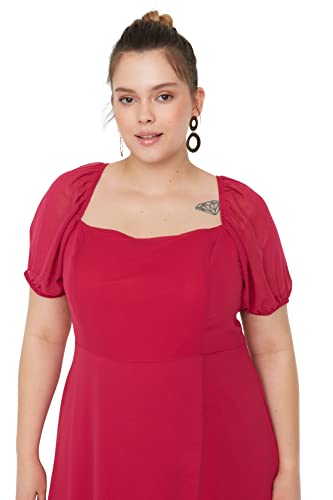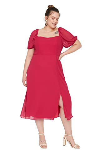 Trendyol - فستان شيفون للنساء من ترينديول بفتحة رقبة مربعة وأكمام منتفخة، منسوج مع فتحة وخط داخلي، طراز TBBSS22AH0012