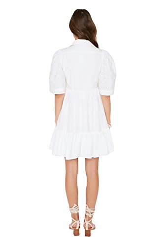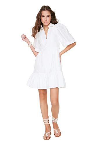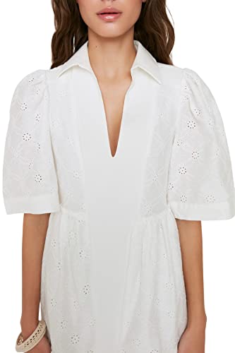 Trendyol - فستان قصير مبطن منسوج بتطريز بفتحة حزام للنساء، TWOSS21EL3680 من ترنديول - لون أبيض