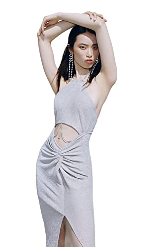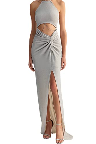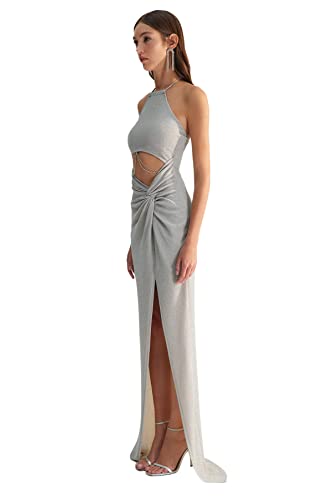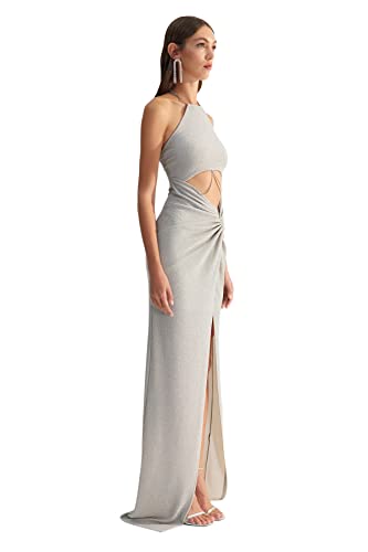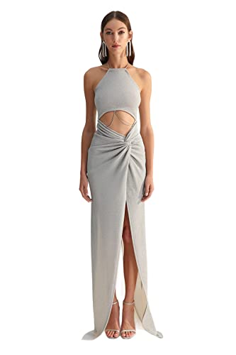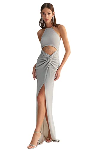 Trendyol - ترنديول فستان سهرة نسائي اكس زينب توسون رمادي مناسب للحفلات الراقصة مع سلسلة مفصلة ومبطنة TCLSS23AE00000. فستان سهرة وفستان تخرج