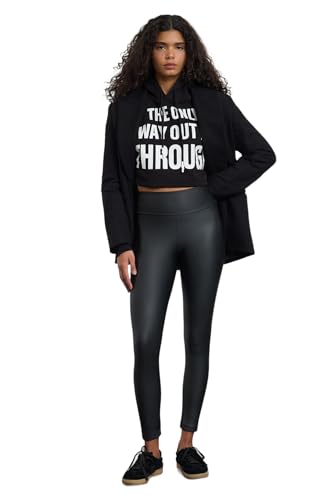 Trendyol - ترنديول سروال ضيق محبوك قابل للتمدد بمظهر جلد لامع للنساء Twoaw25ta00004 (عبوة من قطعة واحدة)
