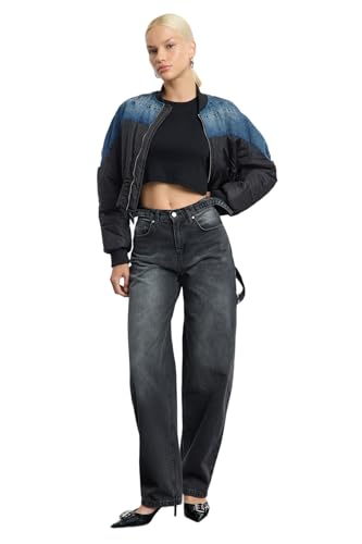 Trendyol - ترنديول بنطلون جينز فضفاض بخصر مرتفع للنساء بلون رصاصي - Twoaw24je00308 (عبوة من قطعة واحدة)
