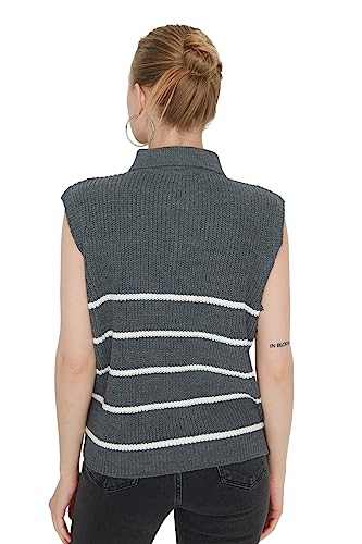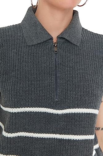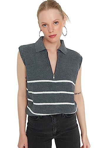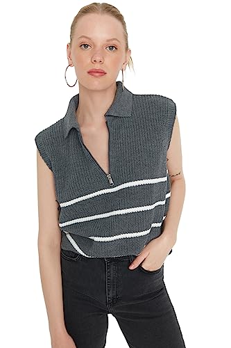 Trendyol - ترنديول سويتر برقبة بولو مخططة بسحاب للنساء بلون رصاصي Twoaw23Sv0007 (عبوة من قطعة واحدة)
