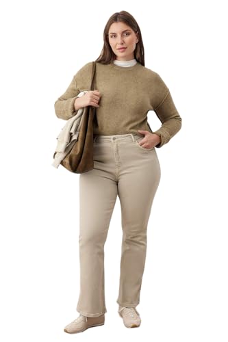 Trendyol - بنطلون جينز للنساء مريح بخصر عال، قصة أرجل واسعة على الطراز الإسباني، طراز Tbbaw23Je00001 من ترنديول، مقاس كبير، بيج (عبوة من قطعة واحدة)