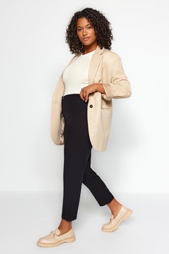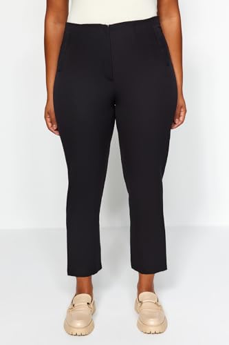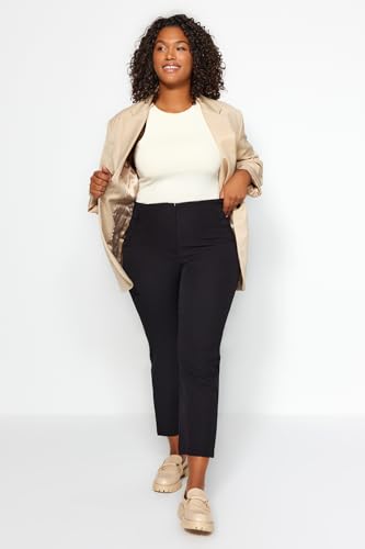 Trendyol - بنطلون قماش منسوج بخصر مرتفع بطول الكاحل للنساء من ترينديول، مقاس كبير (عبوة من قطعة واحدة)، لون أسود، موديل Tbbaw23Ar00015