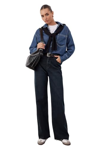 Trendyol - بنطلون جينز للنساء بخصر مرتفع وساق واسعة وأرجل واسعة بلون أسود موديل Twoaw26Je00089 من ترينديول