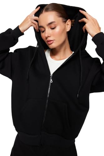 Trendyol - سويت شيرت TWOAW24SW00188 أساسي منسوج بغطاء للرأس وقصة مريحة من الصوف السميك للنساء من ترينديول - عبوة من قطعة واحدة
