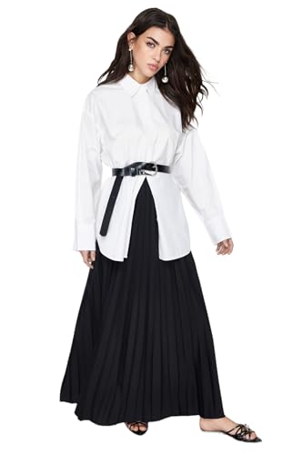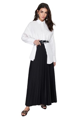 Trendyol - ترنديول تنورة طويلة محبوكة بكسرات للنساء بلون اسود TCTSS24EE00005