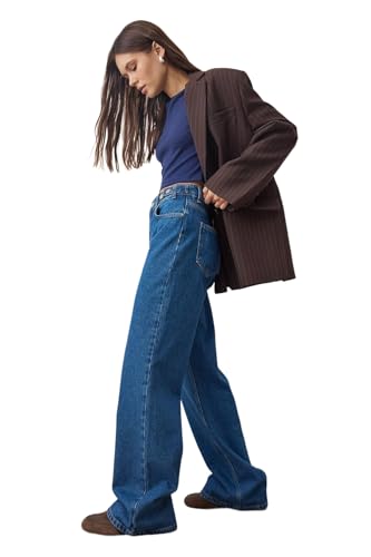 Trendyol - ترنديول بنطلون جينز للنساء بخصر مرتفع وساق واسعة لون ازرق Twoaw25Je00039