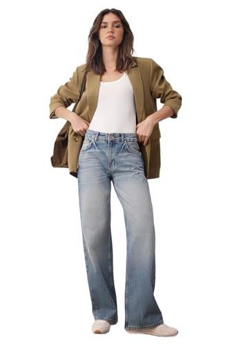 Trendyol - جينز طراز Twoaw26Je00078 خصر عادي ساق واسعة للنساء من ترينديول، لون أزرق، من قطعة واحدة