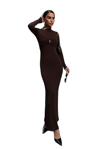 Trendyol - ترنديول فستان سهرة محبوك بقصة ضيقة للنساء من براون مع اكسسوارات فستان التخرج الليلي Tpraw25el00166 (عبوة من قطعة واحدة)