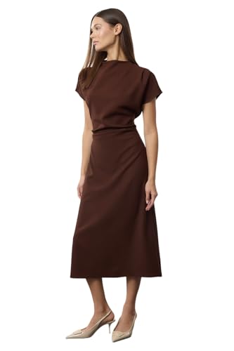 Trendyol - ترنديول فستان منسوج متوسط الطول بقبة ايه لاين للنساء بلون بني Twoaw25El00393 (عبوة من قطعة واحدة)