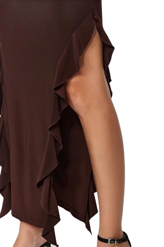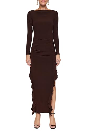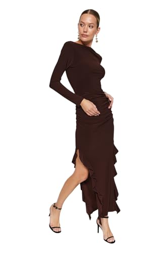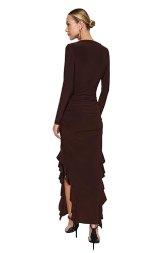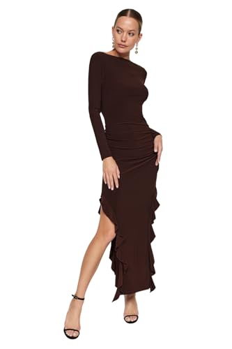 Trendyol - فستان كايا ماكسي محبوك بتنورة بنية اللون للنساء TWOAW24EL00616 من ترنديول (عبوة من قطعة واحدة)