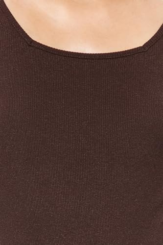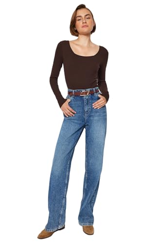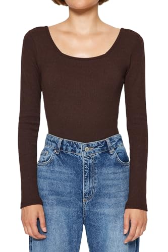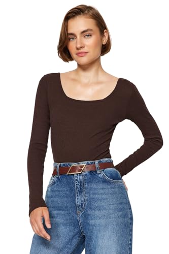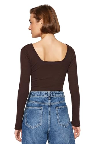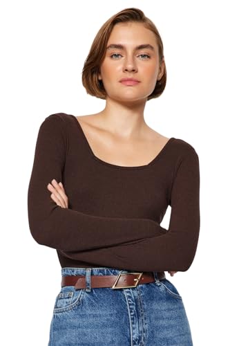 Trendyol - ترنديول سالوبيت بكباسين مضلع منسوج باكمام طويلة وقبة مربعة بلون بني للنساء TWOAW21BD0022 (عبوة من قطعة واحدة)